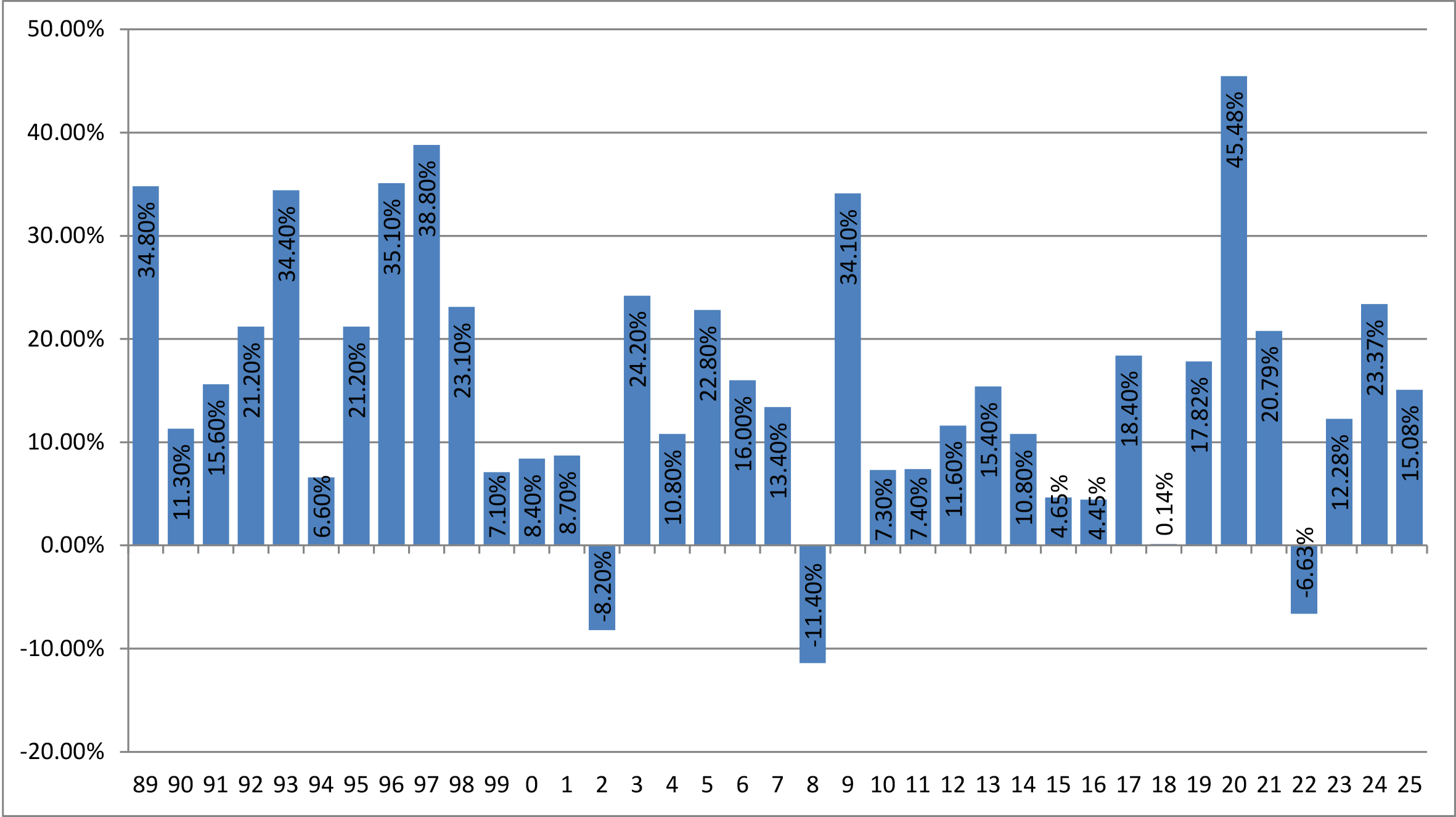 Durchschnittliche Rendite 01.01.1989 bis 31.12.2023 (währungsbereinigt in CHF)